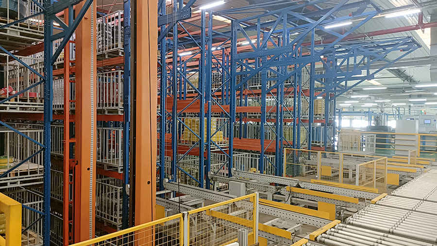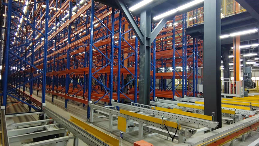 本方案總貨位3712個,高度11m。本立體倉庫系統(tǒng)全套設(shè)備由貨架、巷道堆垛機系統(tǒng)及巷道設(shè)備(天軌、地軌、滑觸線)、輸送系統(tǒng)、計算機調(diào)度監(jiān)控系統(tǒng)(WCS)、倉庫管理系統(tǒng)(WMS)、SCADA、MES、中控大屏和托盤等組成。提高35%運行效率。