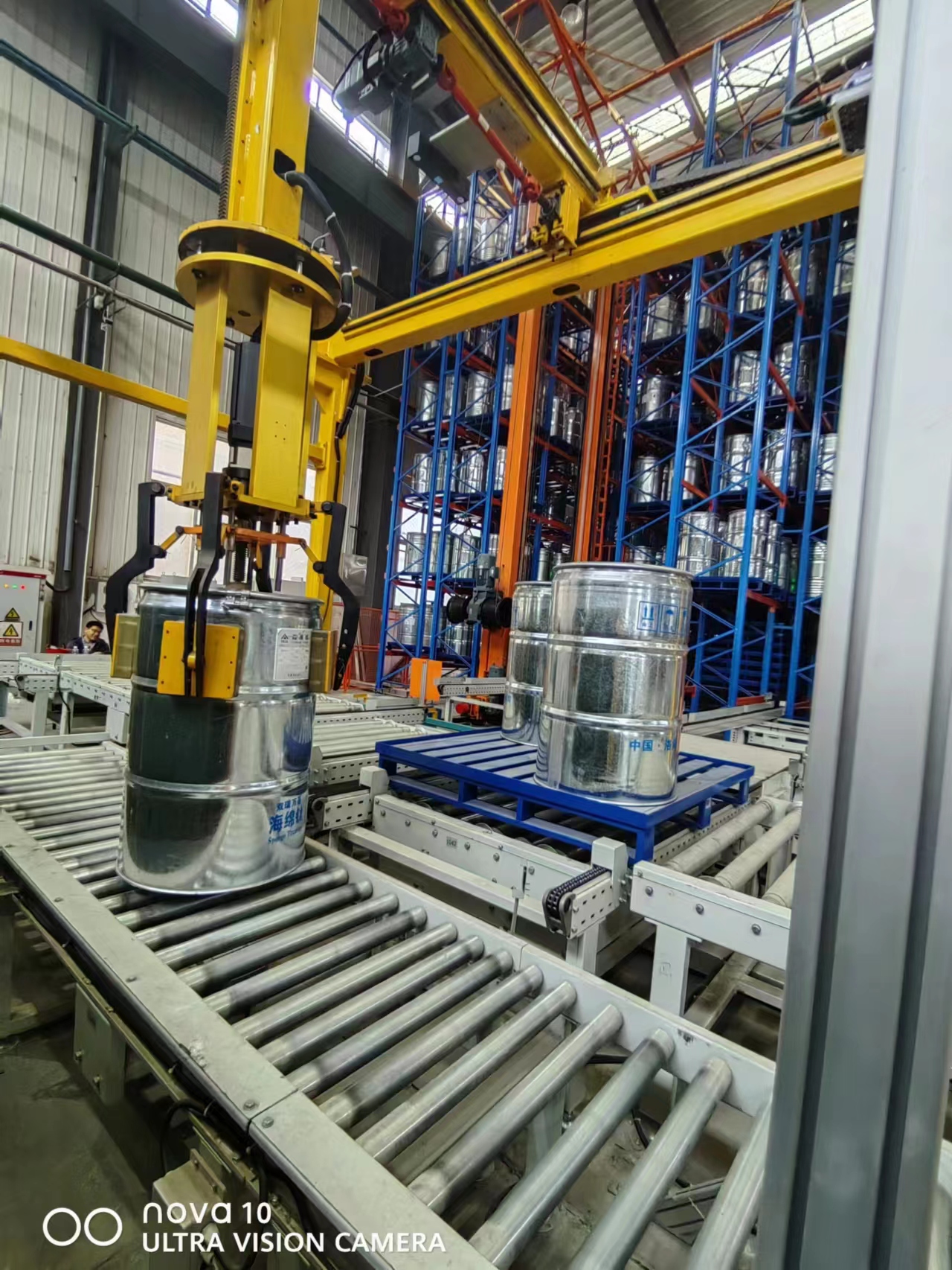 本方案總貨位2688個(雙深位2個巷道,8排28×2列6層),高度9.6m。全套設備由1臺轉彎式雙立柱有軌巷道堆垛機,雙深位雙電機貨叉,4臺鏈條機,5臺輥道機和2臺移載機;2個入庫輥道機中部安裝1套外形檢測裝置、1套稱重裝置和1只固定式條碼掃描器。全部實現自動化處理。
